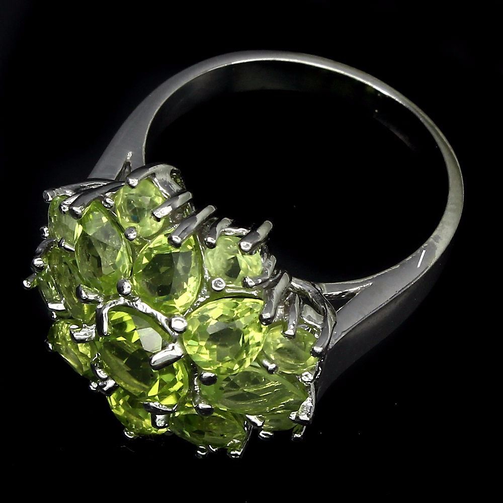 925 STERLING SILVER;PLATE-14K WHITE GOLD;RING SIZE-6;MAIN STONE-PERIDOT;TOTAL WEIGHT-29.97 CT (TOTAL WEIGHT OF SILVER + STONE)DIMENSIONSTONE -3.0 TO 6.0 MM. * FACE RING 18 MM.MAIN STONE SHAPE-ROUND CUT;MAIN STONE COLOR-TOP RICH GREEN;CLARITY/GRADE-IF TO VVS;TREATMENT-UNHEATED;ORIGIN-PAKISTAN;HARDNESS-6.5 - 7.0