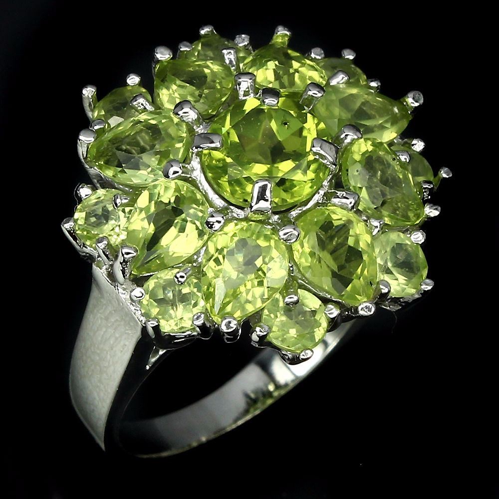 925 STERLING SILVER;PLATE-14K WHITE GOLD;RING SIZE-6;MAIN STONE-PERIDOT;TOTAL WEIGHT-29.97 CT (TOTAL WEIGHT OF SILVER + STONE)DIMENSIONSTONE -3.0 TO 6.0 MM. * FACE RING 18 MM.MAIN STONE SHAPE-ROUND CUT;MAIN STONE COLOR-TOP RICH GREEN;CLARITY/GRADE-IF TO VVS;TREATMENT-UNHEATED;ORIGIN-PAKISTAN;HARDNESS-6.5 - 7.0
