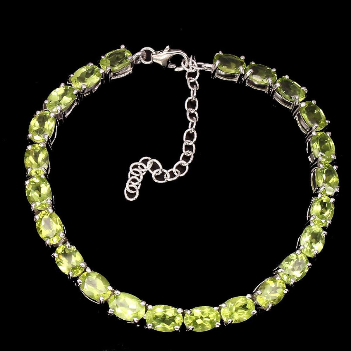 925 STERLING SILVER;PLATE14K WHITE GOLD;LENGTH (INCHES)9.5;MAIN STONEPERIDOT;TOTAL WEIGHT69.06 CT (TOTAL WEIGHT OF SILVER + STONE)DIMENSION* STONE 7X5 MM. * FACE BRACELET 170.0 X 5.0 MM.MAIN STONE SHAPEOVAL CUTMAIN STONE COLORTOP RICH GREENCLARITY/GRADEIF TO VVS;LUSTERPRECIOUS;TREATMENTUNHEATED;ORIGINPAKISTAN;HARDNESS6.5 - 7.0
