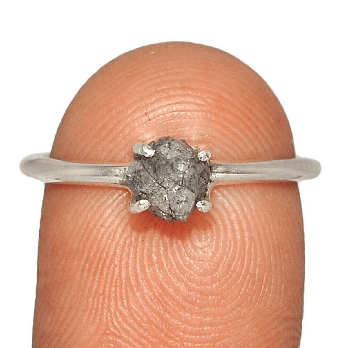 Natural rough grey diamond ( 5mm ) set into a sterling silver ring. Size 7.5. 1.9 grams weight, diamond & silver.Â