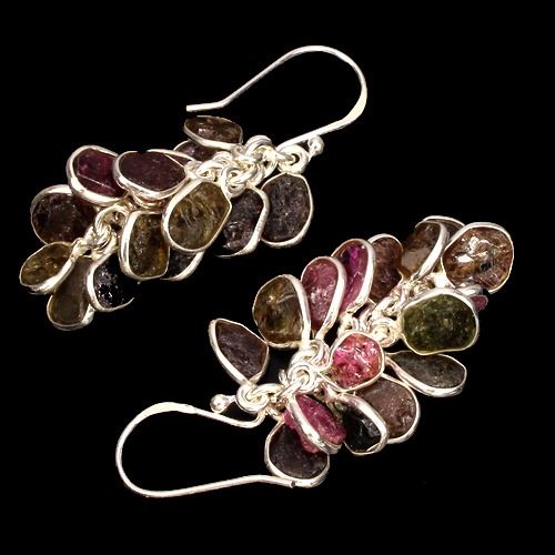 FANCY TOURMALINE (NATURAL) 925 SILVE EARRINGS.......WEIGHT (CT.):57.70 CT. (total weight of silver + stone);DIMENSION:* STONE 6.0 X 5.0 TO 8.0 X 6.0 MM. * FACE EARRINGS 45.0 X 11.0 MM.;SHAPE/CUT:ROUGH NATURAL;COLOR:TOP FANCY COLORS;CLARITY/GRADE:TRANSLUCENT & OPAQUE;TREATMENT:UNHEATED;ORIGIN:BRAZIL;HARDNESS:7.0 - 7.5