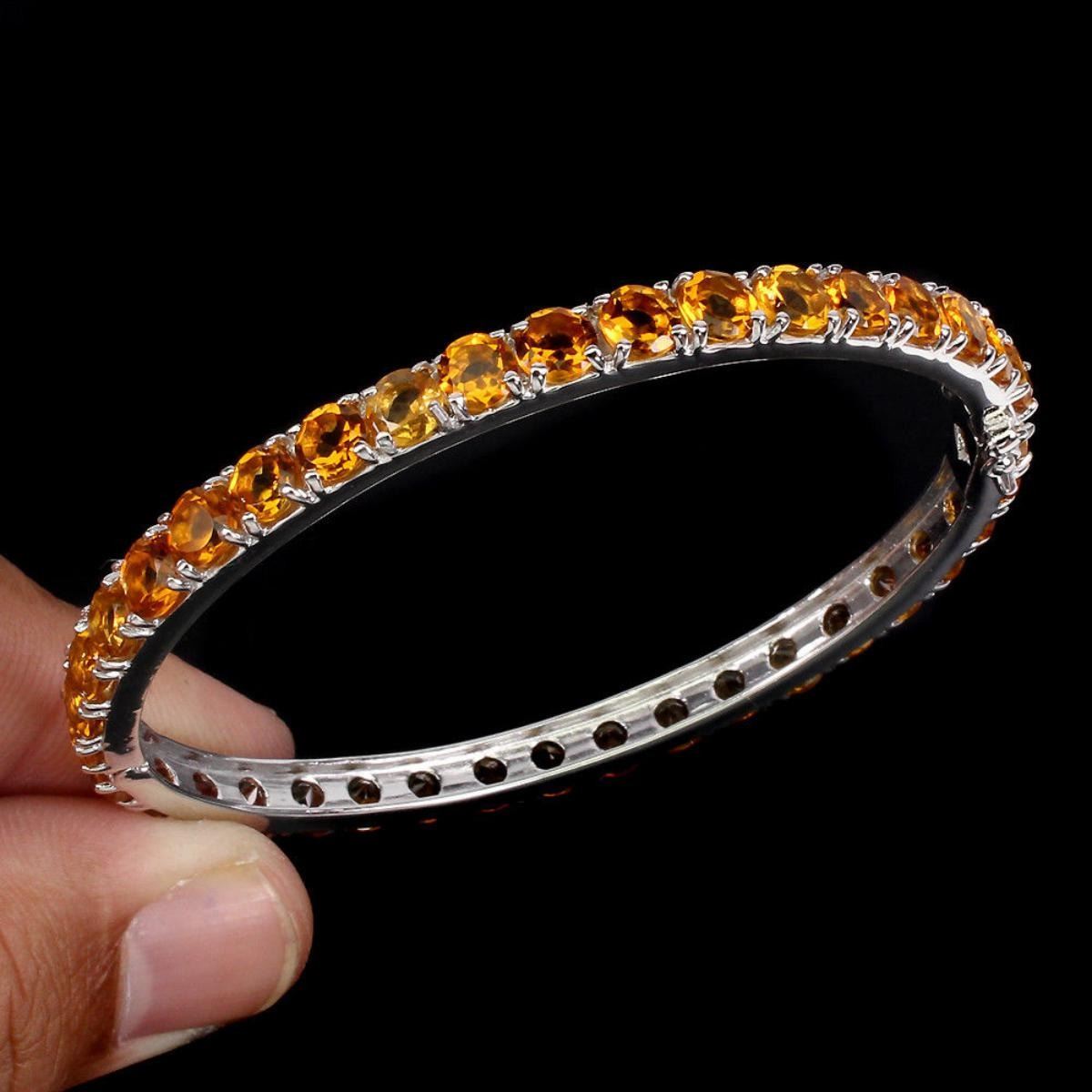 925 STERLING SILVERPLATE14K WHITE GOLDMAIN STONECITRINEOTHER GEMSTOTAL WEIGHT98.67 CT (TOTAL WEIGHT OF SILVER + STONE)DIMENSION* STONE 5.0 MM. * DIAMETER 2.1 X 1.9 INCHES. * FACE BANGLE 70.0 X 5.0 MM.MAIN STONE SHAPEROUND CUTMAIN STONE COLORTOP RICH YELLOWCLARITY/GRADEIF TO VVSLUSTERALLURINGTREATMENTUNHEATEDORIGINBRAZILHARDNESS7.0