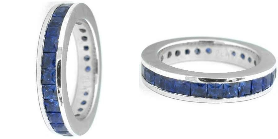 Natural Royal Blue Sapphire & Solid Gold Eternity Band.....natural Royal Blue Sapphire 3.5 carats....100% natural earth mined Sapphires; 14k white gold 3.5 grams aprox; All sizes available....please notify us upon winning this Eternity band.