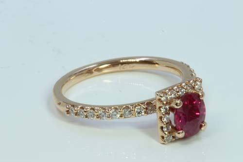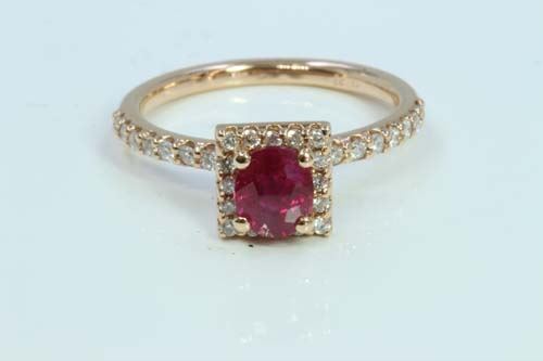 Natural Ruby 0.99ct / Diamond 0.32ct / 14K Rose Gold Ring 2.60gram
