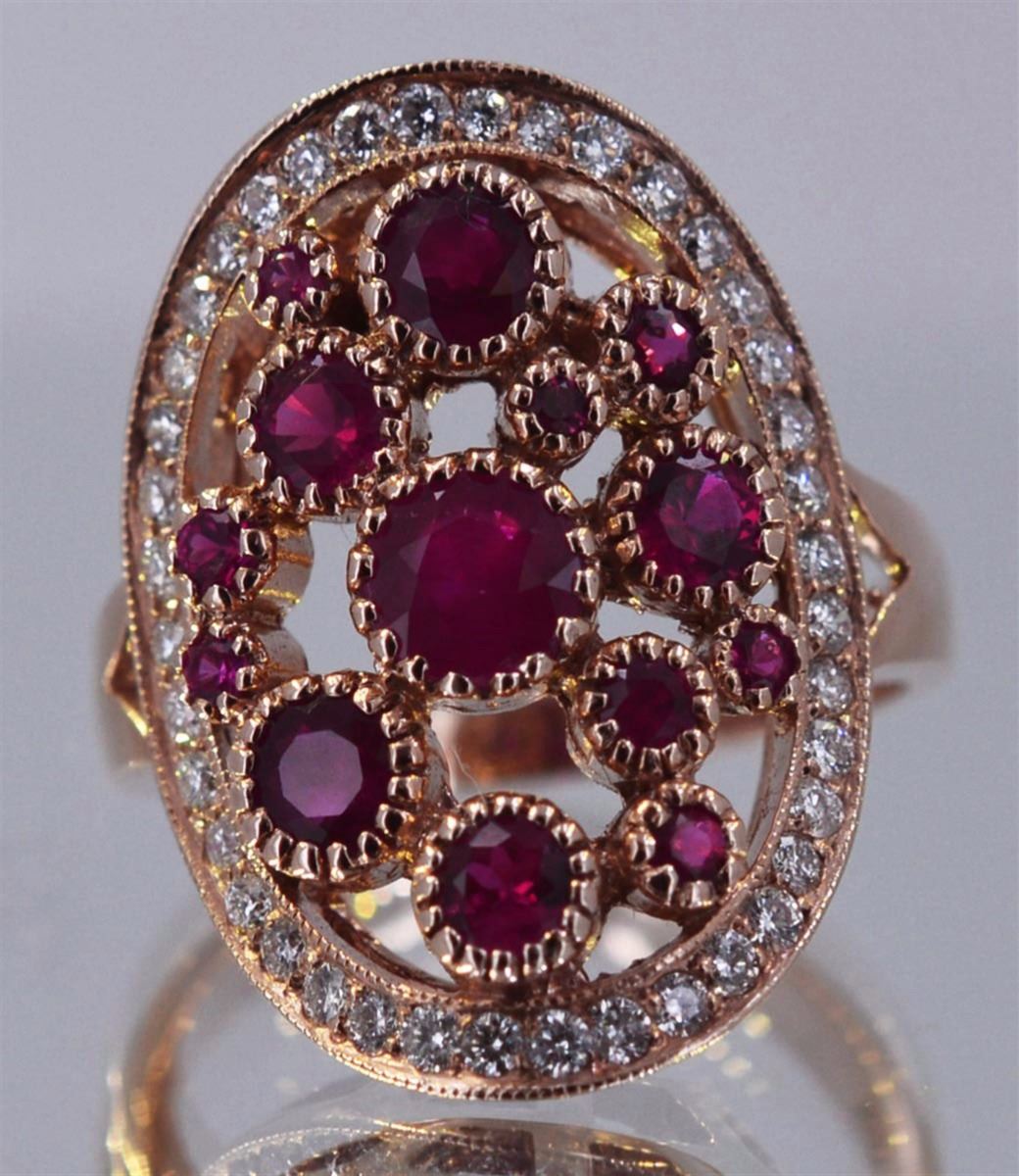 14kt Rose Gold 7.28 Approx grams including, 2ctw Round Ruby (no lead) Deep Red Color, .45ctw Round Diamond G-H color VS-SI clarity