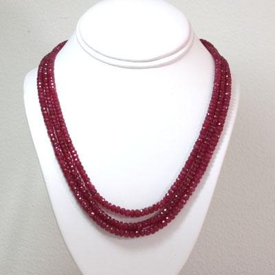 Natural Ruby Necklace 3 Rows Round Cut 359.05 total ctw L-3 ; MSRP: $5655