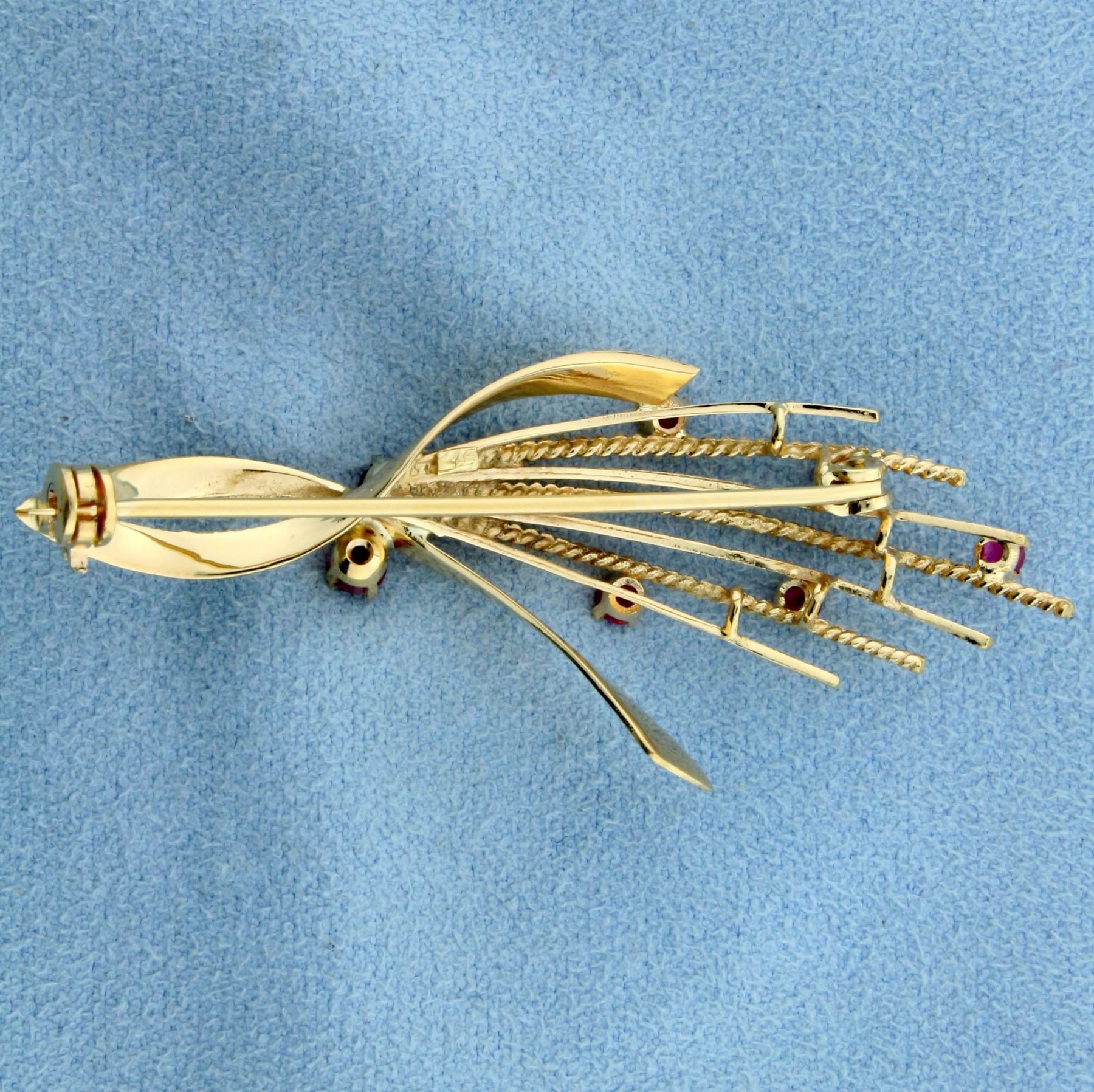 In 18K Yellow Gold. Contains two .1ct and five .06ct high quality natural Rubies with vibrant red/pink color and excellent clarity. 2 1/4 inches long. 5.6g.