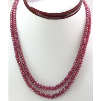 Natural Ruby Round 227.35 CTS.Beads Necklace w/brass c **|**|** Gemstone: Ruby ; Total CTW: 227.35 ; Gem Count 1: 2 Rows ; Chain Szie: approx. 16" ; MSRP: $3010