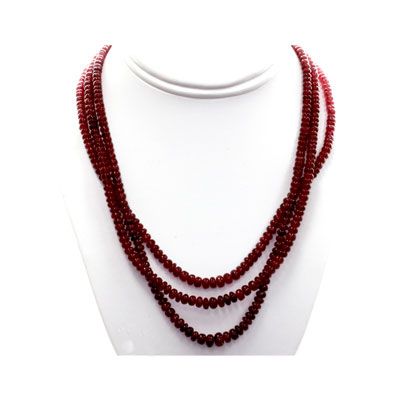 Natural Ruby Round Bead 371.88 CTS. Necklace w/brass **|**|** Gemstone: Ruby ; Total CTW: 371.88 ; Gem Count 1: 3 Rows ; Chain Szie: approx. 16" ; MSRP: $1785