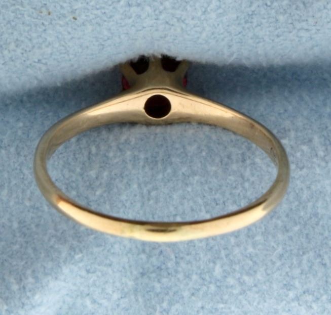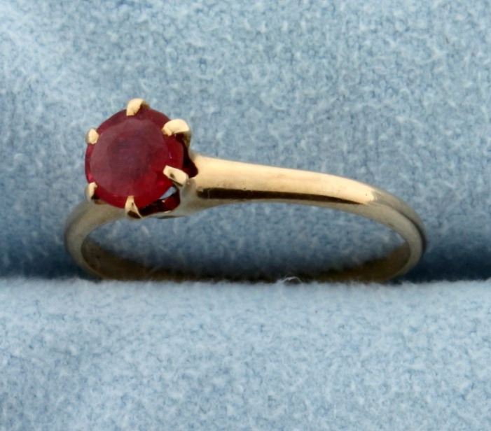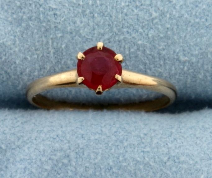 In 14k rose gold. Contains a 1/2ct Natural Ruby with vibrant ruby red color. Size 7. 1.5g.