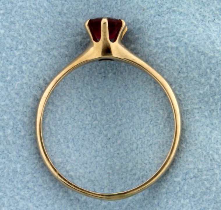 In 14k rose gold. Contains a 1/2ct Natural Ruby with vibrant ruby red color. Size 7. 1.5g.