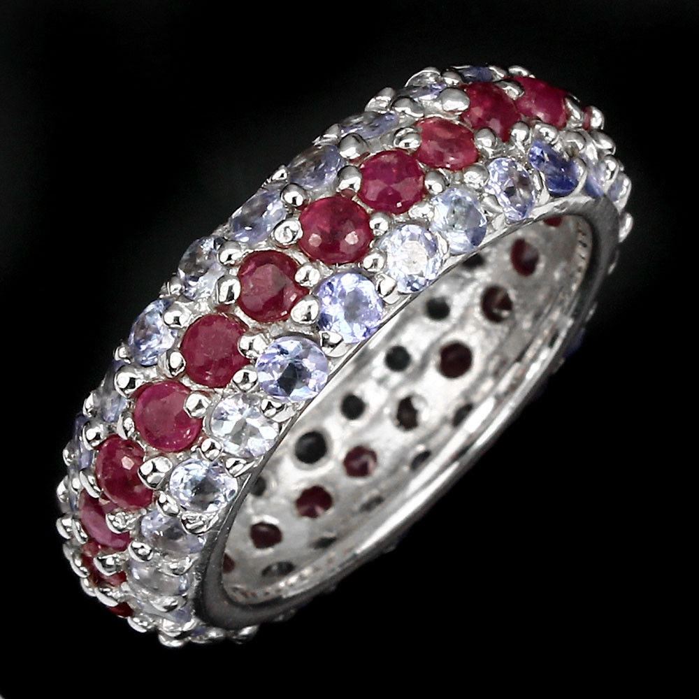925 STERLING SILVER; PLATE -14K WHITE GOLD; RING SIZE 7.5; MAIN STONE RUBY OTHER GEMS TANZANITE TOTAL WEIGHT 24.38 CT (TOTAL WEIGHT OF SILVER + STONE) DIMENSION * STONE 2.0 MM. * RING 7.5 SIZE * FACE RING 24.0 X 6.0 MM. MAIN STONE SHAPE ROUND CUT MAIN STONE COLOR TOP RICH RED PINK CLARITY/GRADE IF TO VVS LUSTER DELUXE TREATMENT HEATED ORIGIN AFRICA HARDNESS 9.0