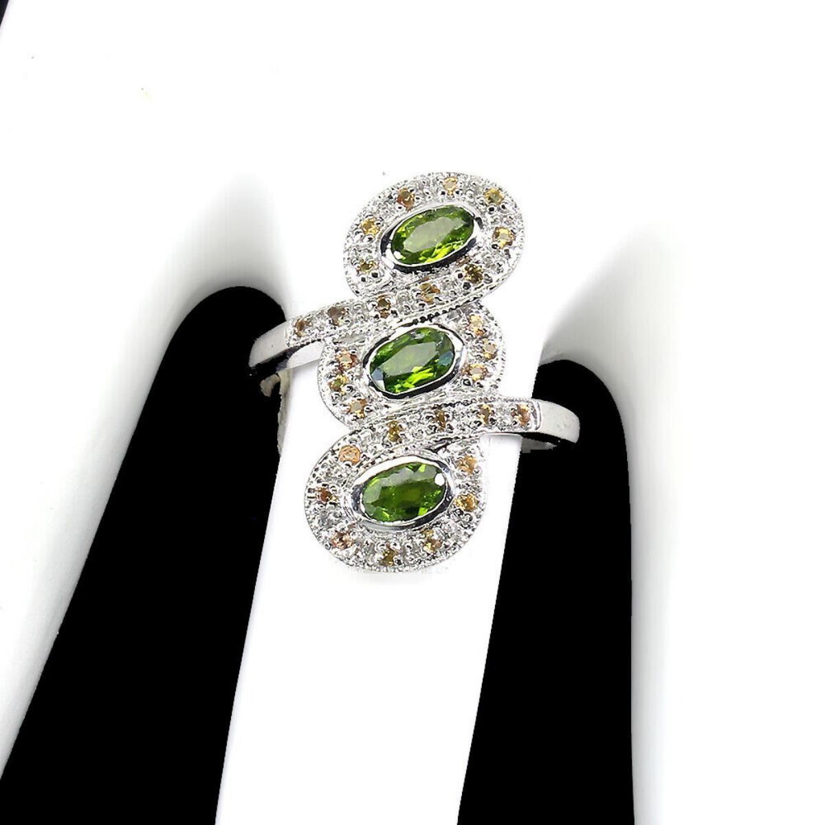 Natural Russian Chrome Diopside & Sapphire Ring