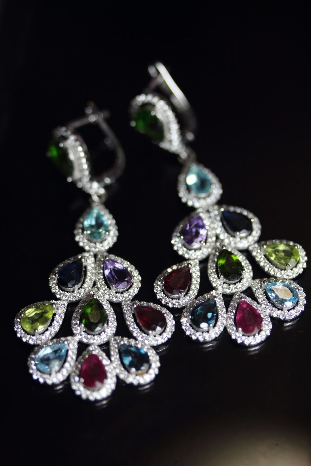 925 sterling silver with 14k gold plated;Natural SAPPHIRE RUBY TOPAZ RHODOLITE Amethyst Earrings ...face -54 x 25 mm;