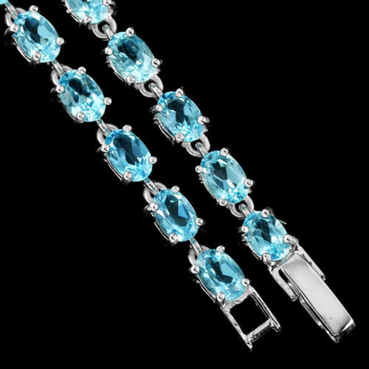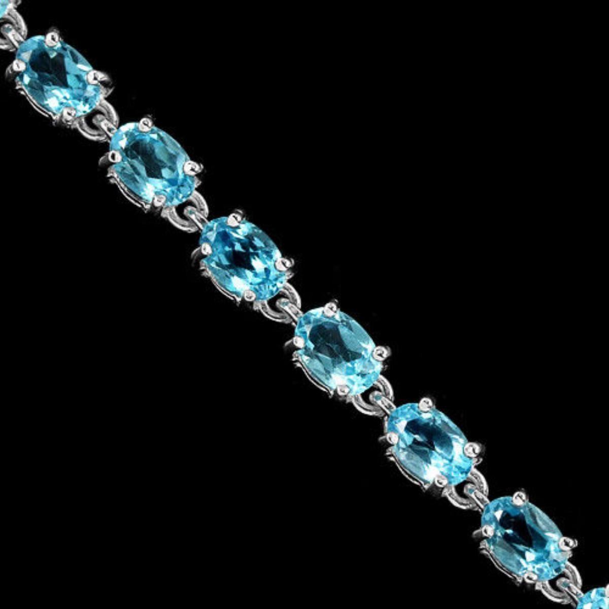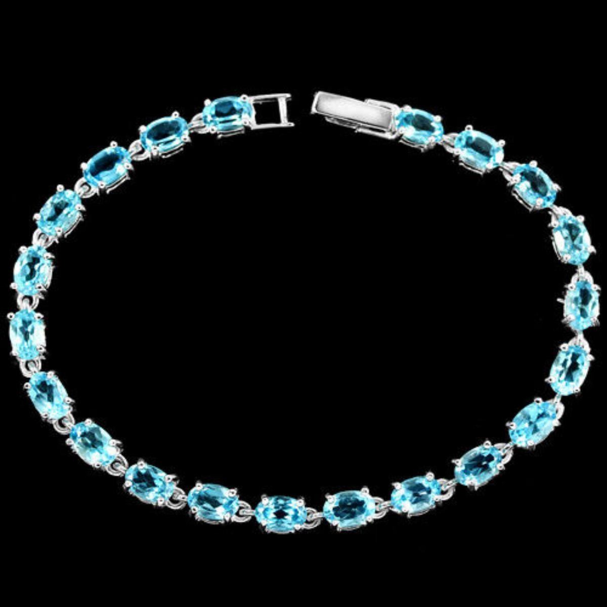 GENUINE AAA SWISS BLUE TOPAZ OVAL 925 SILVER BRACELET 14K WHITE GOLD COATING; LENGTH OF ITEM (Inch.) 7.00; ITEM QUANTITY 1 STONE SHAPE OVAL PORTUGUESE CUT STONE DIMENSION 6 X 4 MM. ITEM WEIGHT 10 GRAM COLOR SWISS BLUE CLARITY IF TO VVS LUSTER BLUE EFFECT TREATMENT IRRADIATION ORIGIN OF STONE AFRICA HARDNESS 8