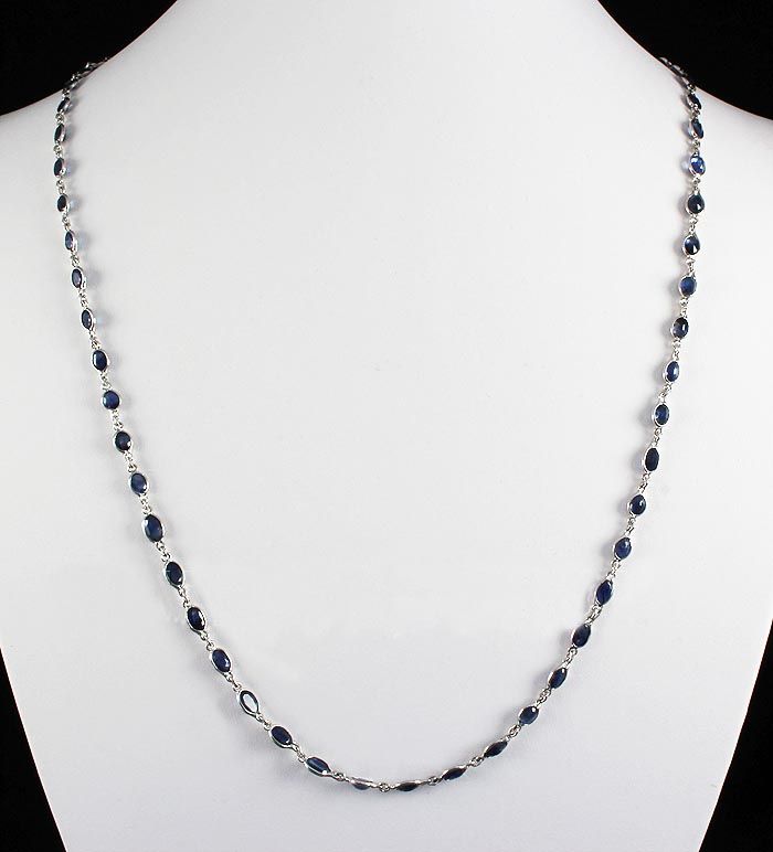 Natural Sapphire 21.70CT SwarovskiDesignSilverNecklace  **|**|** 24in. Long Natural Blue Sapphire Gemstone in Cute Swarovski Design Silver Necklace; 62pcs 5x3mm ; MSRP: $1600