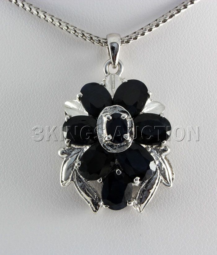 Natural Sapphire 32.53CTW Silver Flower Pendant **|**|** A little heavy cut Sapphire in Silver Flower Pendant; Size: 6x4mm & 8x6mm; ctw: 11.45; stone count: 8; gram weight: 4.22 ; MSRP: $1400