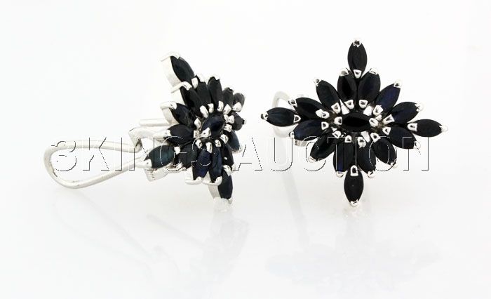 Natural Sapphire 33.13CTW Marquise Cluster Earring **|**|** Dark Blue Sapphire in Marquise Cluster Design Earring with Clipon Back; Stone: mq 5x3mm; ctw: 8.16; stone count: 34; gram weight: 4.99 ; MSRP: $1500