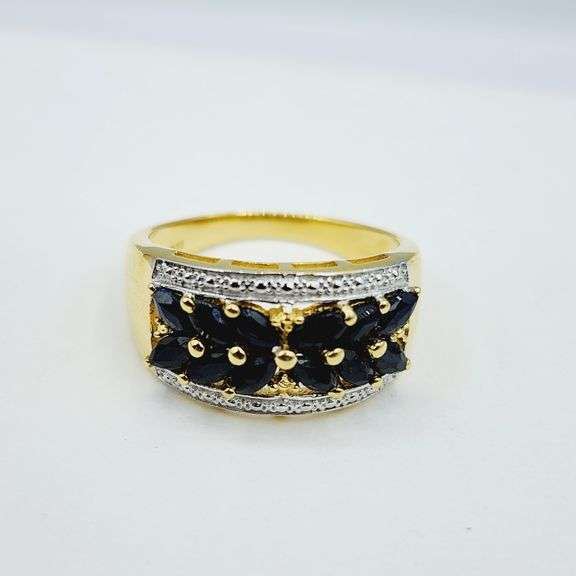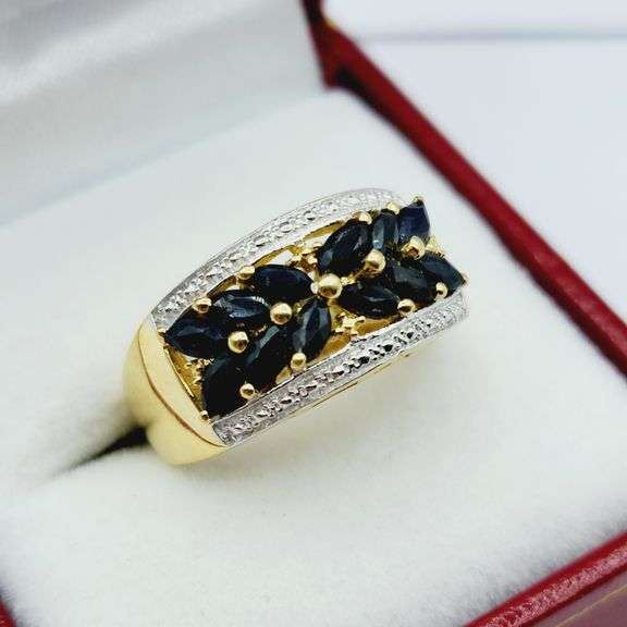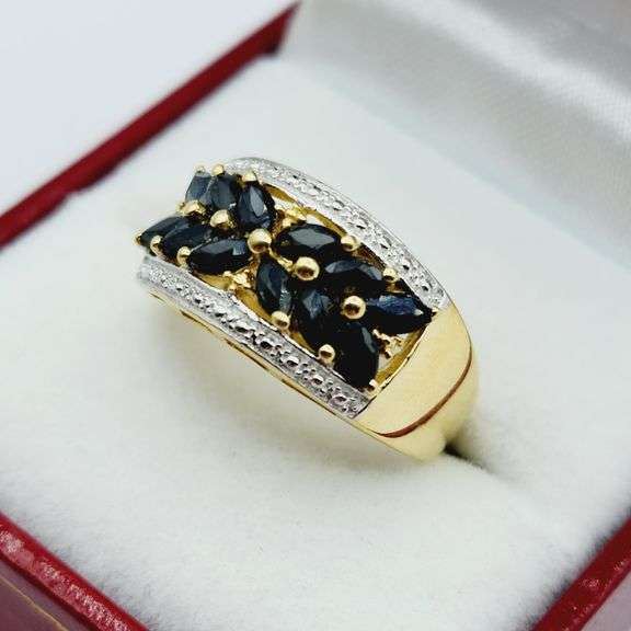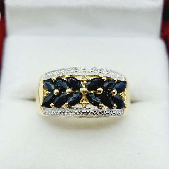 Sterling silver yellow gold tone plated natural sapphire ring, 12 sapphire (0.84cts), size 7. With appraisal $500.00.