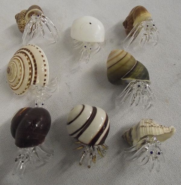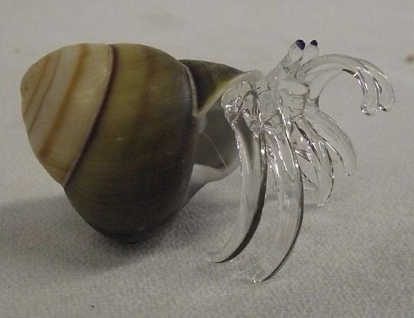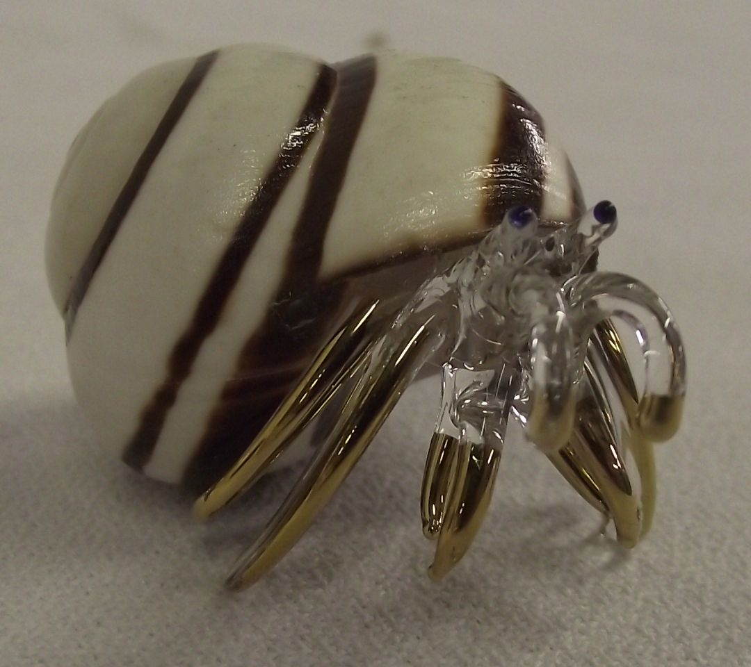 Natural Shell & Blown Glass Hermit Crabs, measures 1'' x 2'', handmade in Thailand
