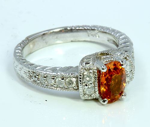 Natural Spessartite 1.07ct / Diamond 0.22ct / 14k White Gold Ring 5.64gram