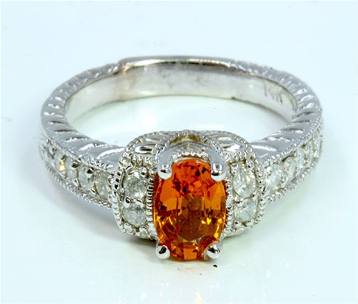 Natural Spessartite 1.07ct / Diamond 0.22ct / 14k White Gold Ring 5.64gram