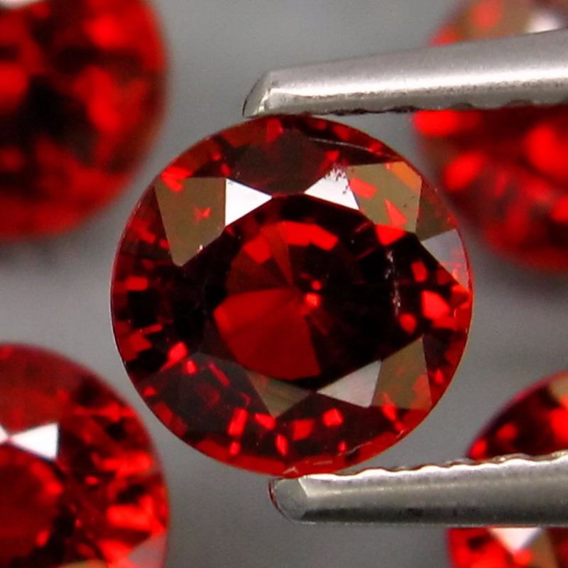 Garnet Spessartine...SHAPE :Round;WEIGHT :4.05 Ct.;SIZE :5.5 Mm.;QUANTITY :5 Pieces;COLOR :Best Orange Red;CLARITY :Vs & Si;LUSTER :Superior;ORIGIN :Africa;TREATMENT :None;HARDNESS :7-7.5;