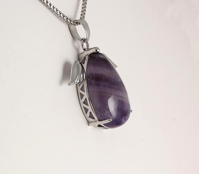 Natural Stone Amethyst Pear Pendant **|**|** 9.70g Natural Stone Cabochon Amethyst Silver Polish Pendant ; MSRP: $0