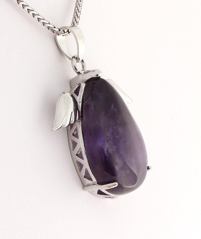 Natural Stone Amethyst Pear Pendant **|**|** 10.20g Natural Stone Cabochon Amethyst Silver Polish Pendant ; MSRP: $0