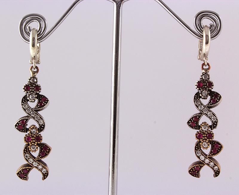 Natural Stone Antique Design Dangle Earring **|**|** 11.52g Natural Stone Ruby Antique Looks Dangle Earring w/ cz diamonds; stamp 925 ; MSRP: $100