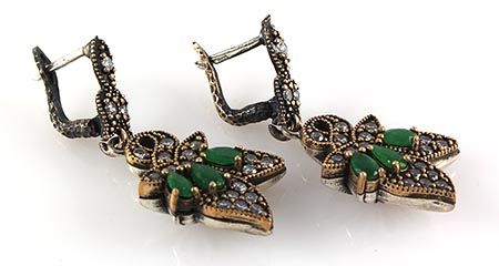 Natural Stone Antique Design Dangle Earring **|**|** 12.04g Natural Stone Emerald Beryl Antique Design Dangle Earring w/ cz diamonds; stamp 925 ; MSRP: $100