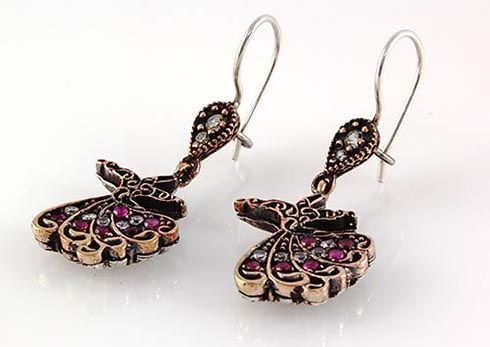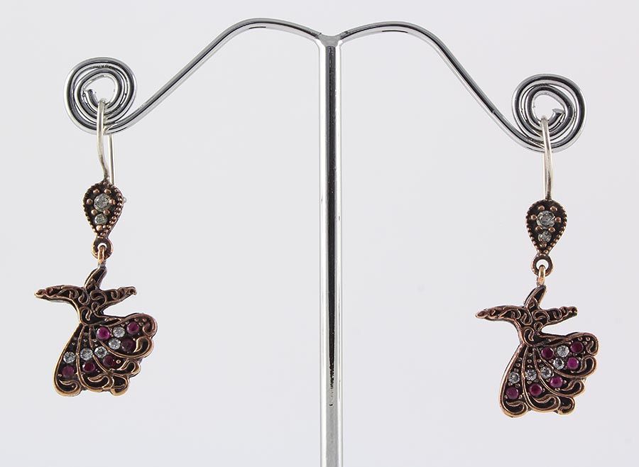 Natural Stone Antique Design Dangle Earring **|**|** 7.64g Natural Stone Ruby Antique Design Dangle Earring w/ cz diamonds; stamp 925 ; MSRP: $100