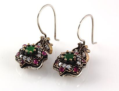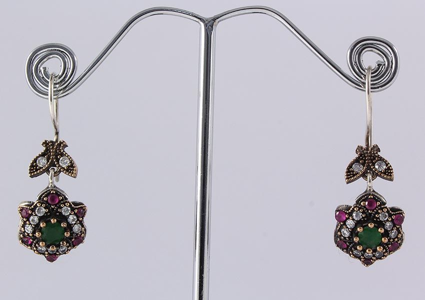 Natural Stone Antique Design Dangle Earring **|**|** 8.18g Natural Stone Ruby & 4MM Emerald Beryl Antique Design Dangle Earring; stamp 925 ; MSRP: $100
