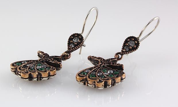 Natural Stone Antique Design Dangle Earring **|**|** 7.63g Natural Stone Emerald Beryl Antique Looks Dangle Earring w/ cz diamonds; stamp 925 ; MSRP: $100