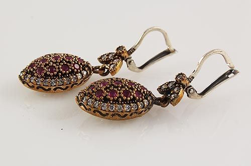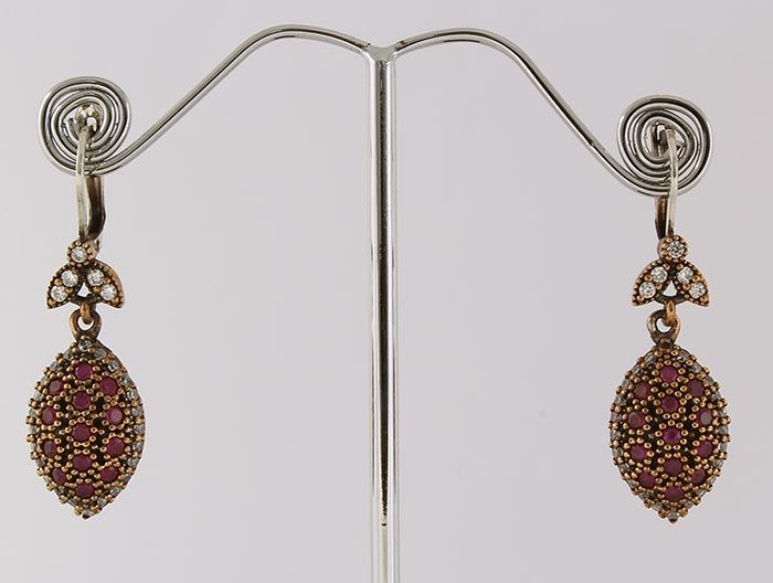 Natural Stone Antique Design Dangle Earring **|**|** 9.95g Natural Stone Ruby Antique Looks Dangle Earring w/ cz diamonds; stamp 925 ; MSRP: $100