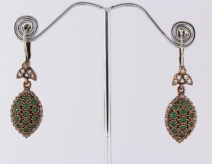 Natural Stone Antique Design Dangle Earring **|**|** 10.40g Natural Stone Emerald Beryl Antique Looks Dangle Earring w/ cz diamonds; stamp 925 ; MSRP: $100