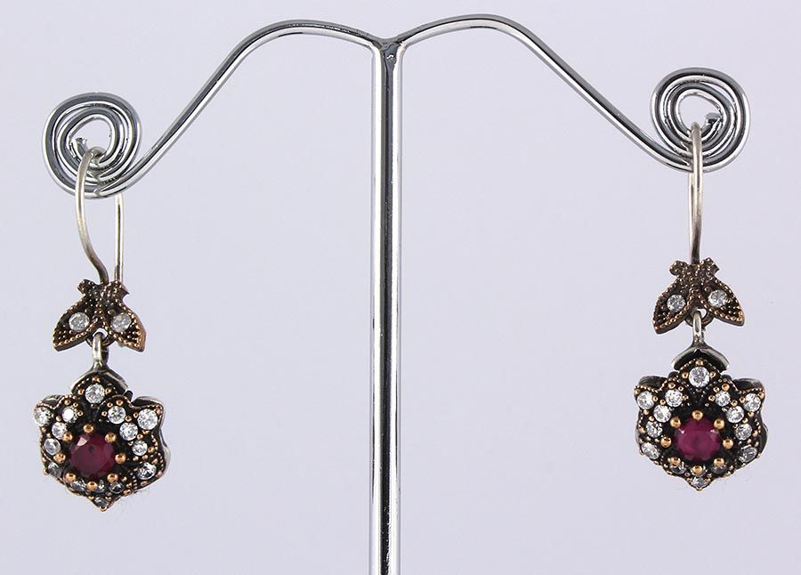 Natural Stone Antique Design Dangle Earring **|**|** 8.12g Natural Stone 4.5MM Ruby Antique Design Dangle Earring w/ cz diamonds; stamp 925 ; MSRP: $100