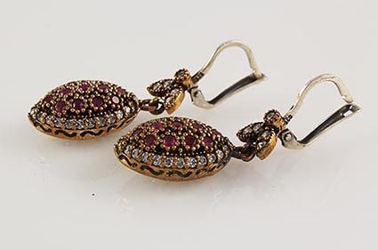 Natural Stone Antique Design Dangle Earring **|**|** 10.11g Natural Stone Ruby Antique Looks Dangle Earring w/ cz diamonds; stamp 925 ; MSRP: $100