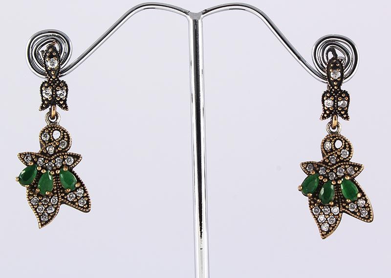 Natural Stone Antique Design Dangle Earring **|**|** 12.04g Natural Stone Emerald Beryl Antique Design Dangle Earring w/ cz diamonds; stamp 925 ; MSRP: $100