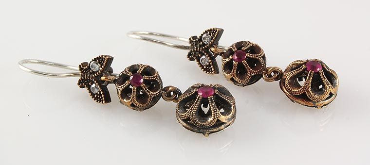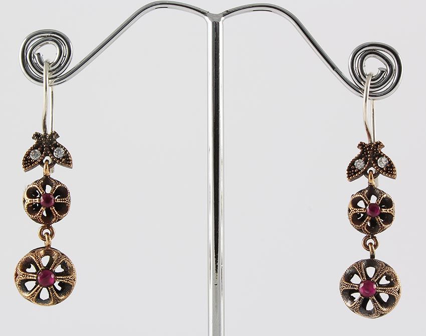 Natural Stone Antique Design Dangle Earring **|**|** 6.30g Natural Stone Ruby Antique Design Dangle Hook Earring; stamp 925 ; MSRP: $0
