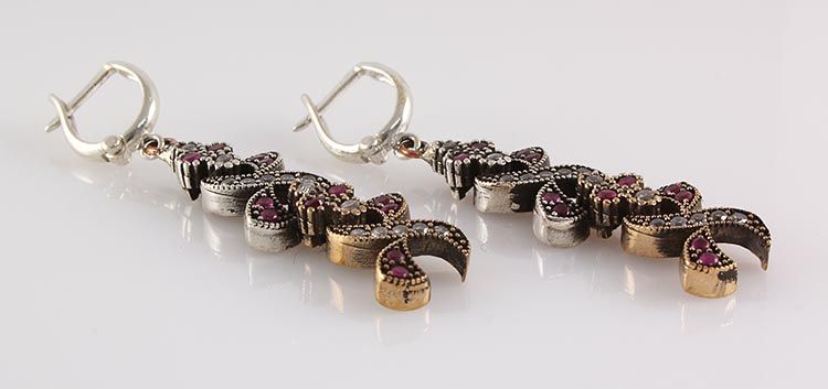 Natural Stone Antique Design Dangle Earring **|**|** 11.52g Natural Stone Ruby Antique Looks Dangle Earring w/ cz diamonds; stamp 925 ; MSRP: $100