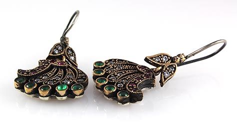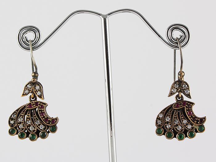 Natural Stone Antique Design Dangle Earring **|**|** 11.44g Natural Stone Ruby and Emerad Beryl Antique Looks Dangle Earring w/ cz diamonds; stamp 925 ; MSRP: $100