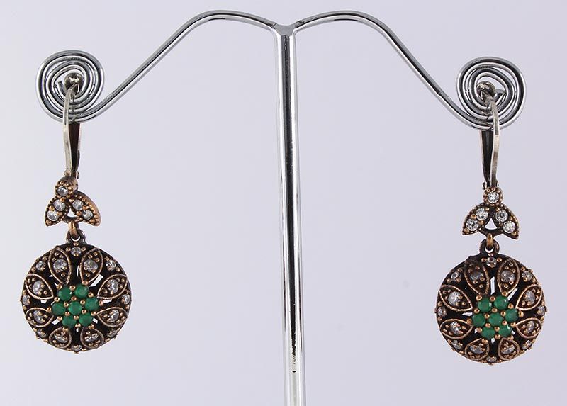 Natural Stone Antique Design Dangle Earring **|**|** 9.70g Natural Stone Emerald Beryl Antique Design Dangle Earring w/ cz diamonds; stamp 925 ; MSRP: $100