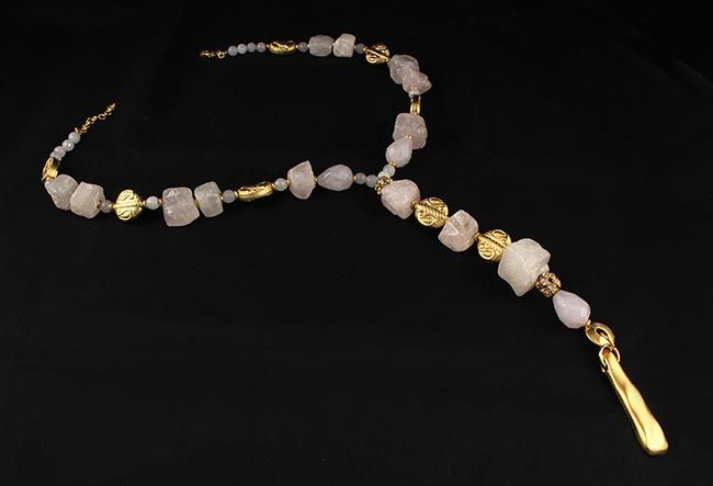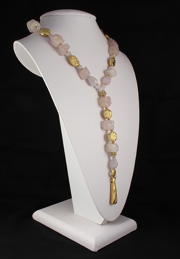 Natural Stone Chunky Raw Rose Quartz Necklace **|**|** 566.00CARAT Feminine Y Handmade Chuncky Rose Quartz Neckalce w/ Gold Plated Vintage Design Connector ; MSRP: $0