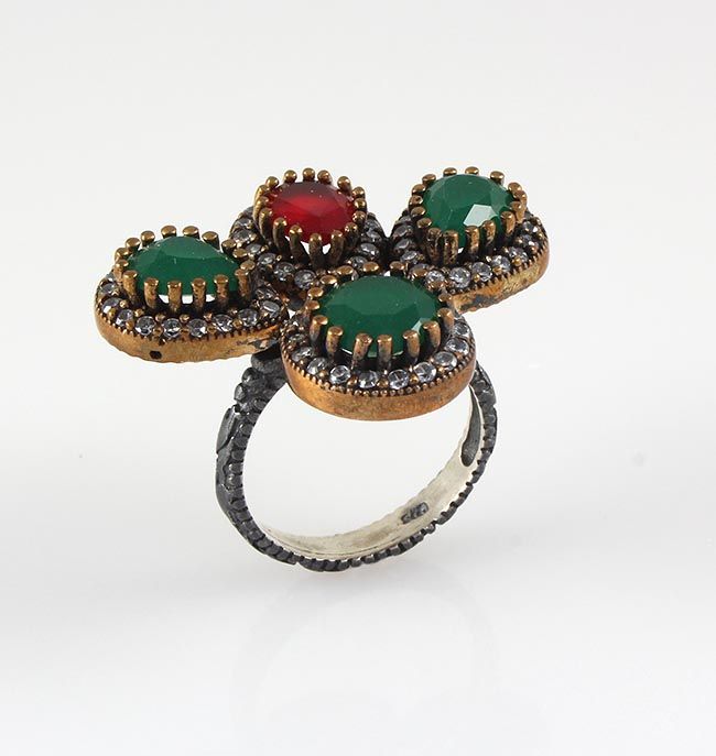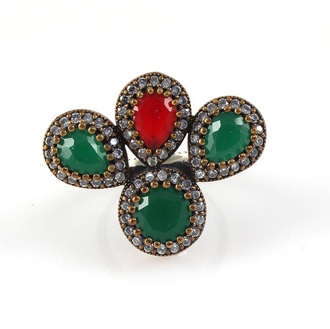 Natural Stone Cocktail Victorian Design Ring **|**|** 8.47g Natural Stone Cocktail Ring Victorian Design w/ Ruby & Emerald Beryl; size Rd-8MM, Pear-9x7MM; stamp 925 ; MSRP: $100