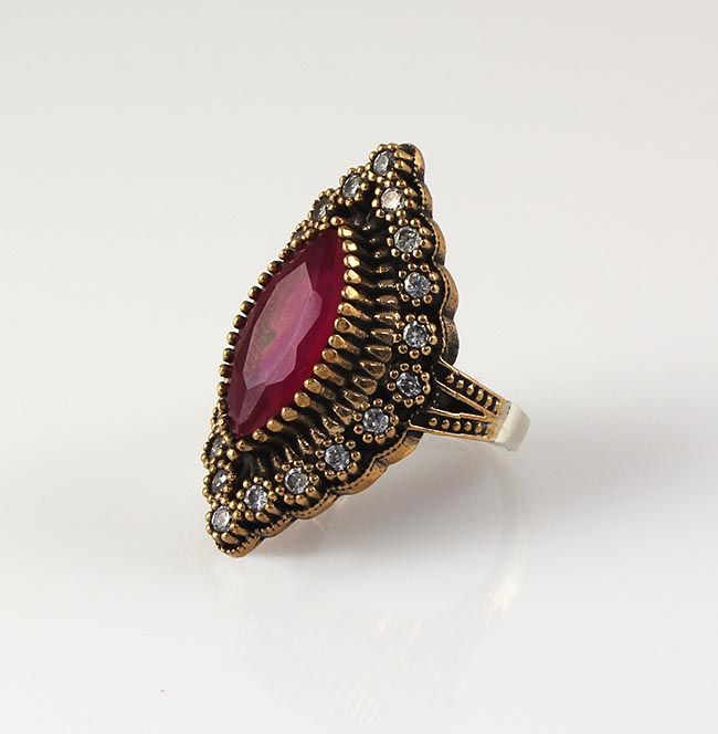Natural Stone Cocktail Victorian Design Ring **|**|** 9.14g Natural Stone Cocktail Ring Victorian Design 16x9MM MQ Ruby center w/ cz dia; stamp 925 ; MSRP: $100