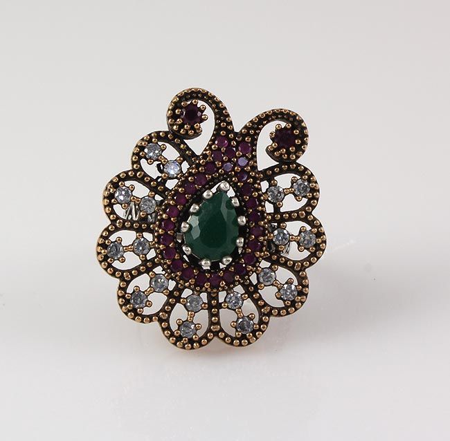 Natural Stone Cocktail Victorian Design Ring **|**|** 10.16g Natural Stone Cocktail Ring Victorian Design w/ 8x6MM Emerald Beryl center; stamp 925 ; MSRP: $100