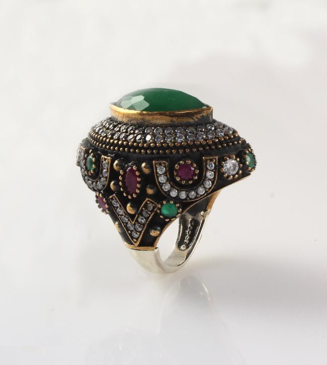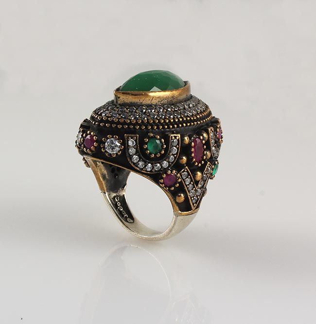 Natural Stone Cocktail Victorian Design Ring **|**|** 26.33g Natural Stone Cocktail Ring Victorian Design w/ 20x9MM MQ Emerald Beryl center; stamp 925 ; MSRP: $200