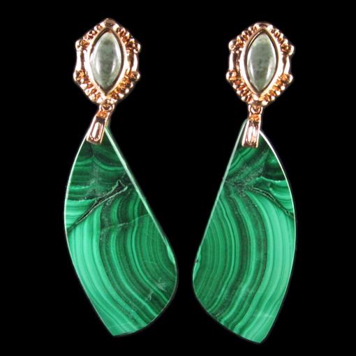 This is a pair of our own designer 925 silver Malachite earring *Stone Properties *Name Malachite *Dimension 60x18x3 mm (2.362x0.709x0.118 inch ) *Weight 70 ct/ 14 g/ 0.493836 oz *Shape *Locality Congo *Appearance opaque *Color banded light and dark green *Mohs Hardness 4 *Source Natural *Treatments None *Drilled YES diameter 2.5/36-3/36 inch *Other Names Peacock stone mineral forms of Copper~~~~~~~~~(+) Each step of our Lapidary work is under tight quality control . With the best pattern-color combination possible in mind the initial cut was done by experienced lapidary ... The last-step diamond polishing makes the surface of each bead/cab mirror-like glossy that meet the highest standard possible. Finally only those met all quality requirements are selected.