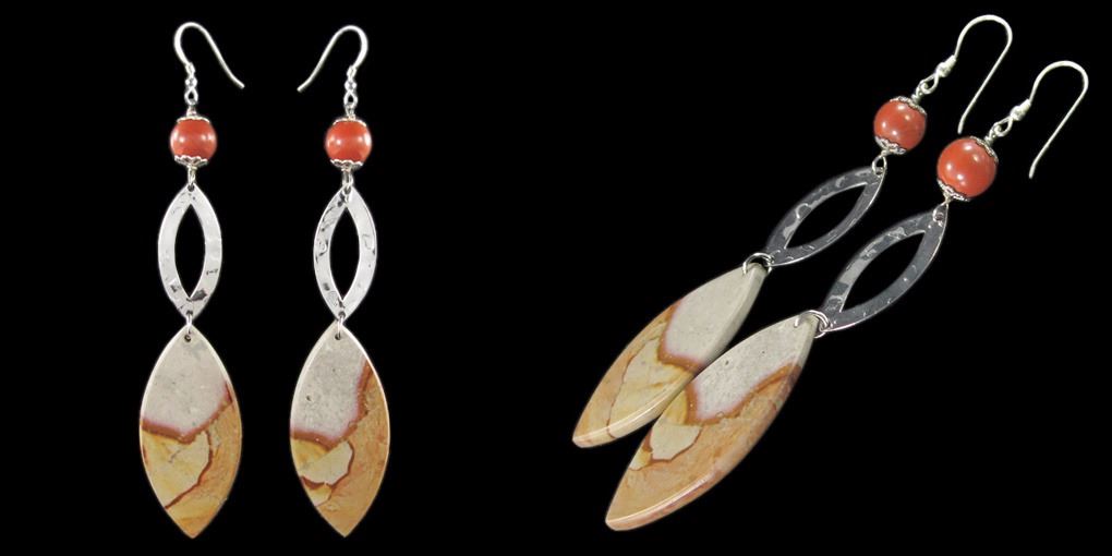 This is a pair of our own designer 925 silver Succor Creek Jasper bead earring *Other Stone used *Stone Properties *Name Succor Creek Jasper *Dimension 97x15x3 mm (3.819x0.591x0.118 inch ) *Weight 70 ct/ 14 g/ 0.493836 oz *Shape *Locality USA - Oregon *Appearance opaque *Color Brown Gray yellowish bluish *Mohs Hardness 7 *Source Natural *Treatments None *Drilled YES diameter 2.5/36-3/36 inch *